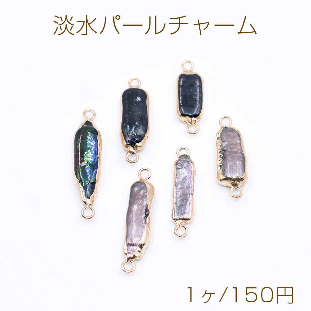 高品質淡水パールチャーム No.43 不規則 ゴールド 2カン付き【1ヶ】