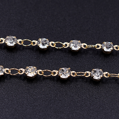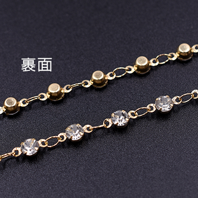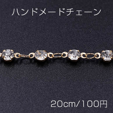 ハンドメードチェーン ラインストーン付き 4mm ゴールド【20cm】