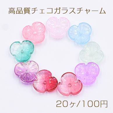高品質チェコガラスチャーム 3弁花 穴あり 10×10mm 全9色