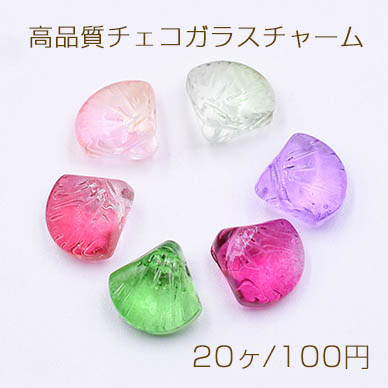 高品質チェコガラスチャーム 貝殻 横穴 10×10mm 全6色