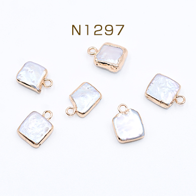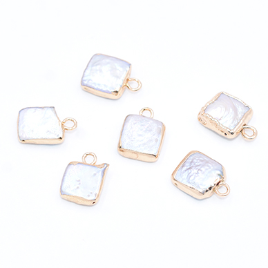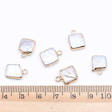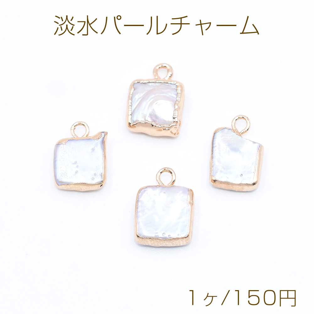 高品質淡水パールチャーム No.49 正方形 ゴールド/ホワイト カン付き【1ヶ】