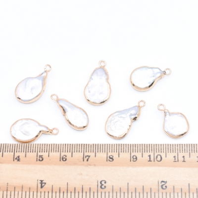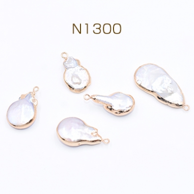 高品質淡水パールチャーム No.52 不規則雫 ゴールド/ホワイト カン付き【1ヶ】