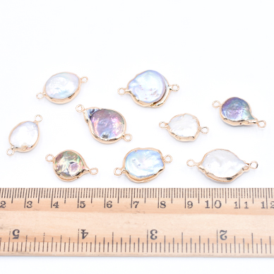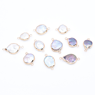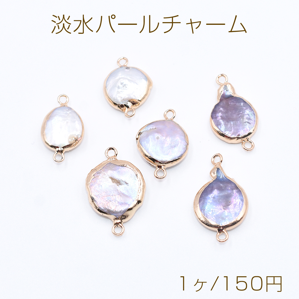 高品質淡水パールチャーム No.55 不規則コイン ゴールド 2カン付き【1ヶ】