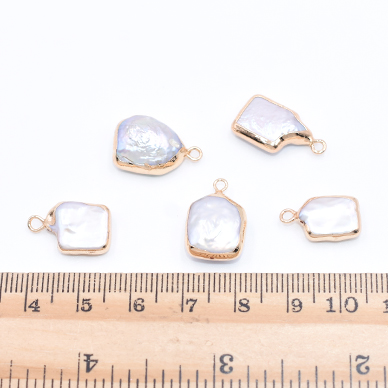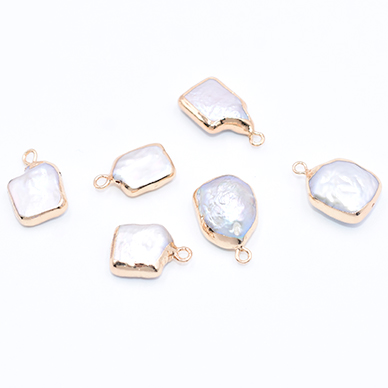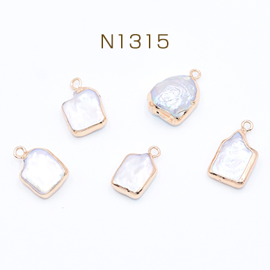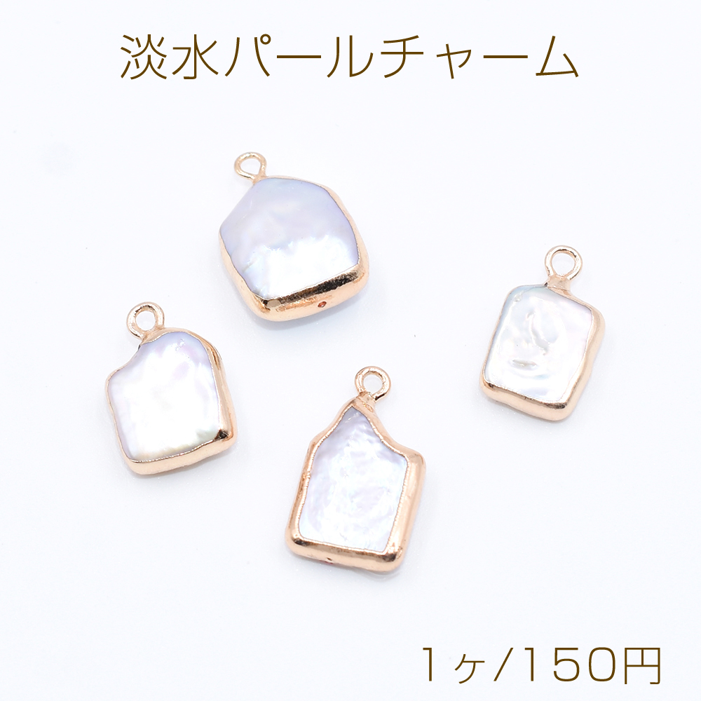 高品質淡水パールチャーム No.48 不規則正方形 ゴールド/ホワイト カン付き【1ヶ】