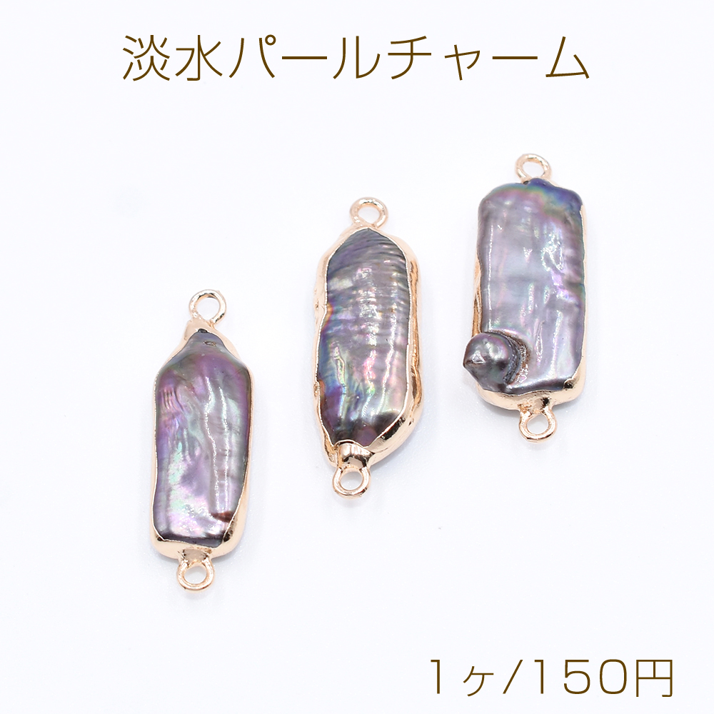 高品質淡水パールチャーム No.60 不規則 ゴールド/パープル カン付き【1ヶ】