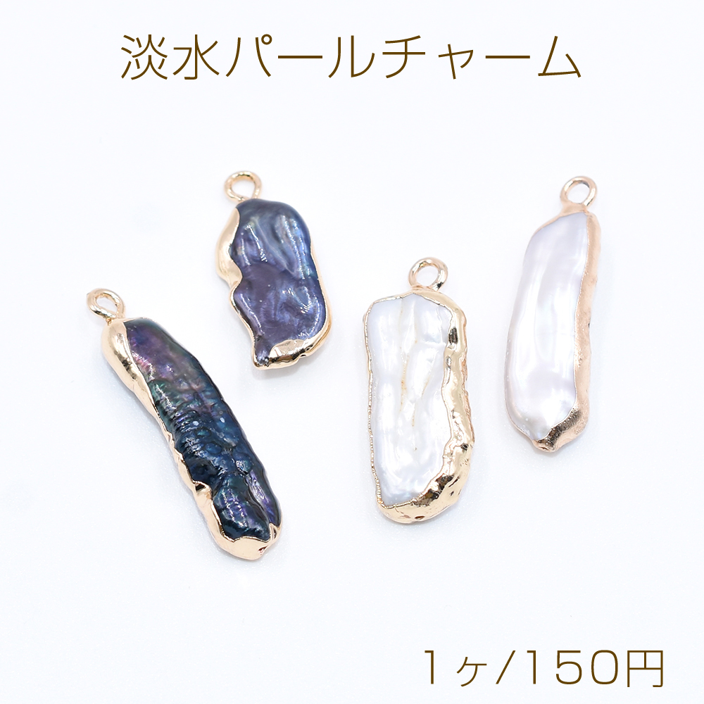 高品質淡水パールチャーム No.61 不規則 ゴールド カン付き【1ヶ】