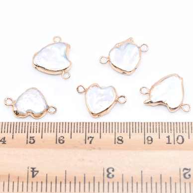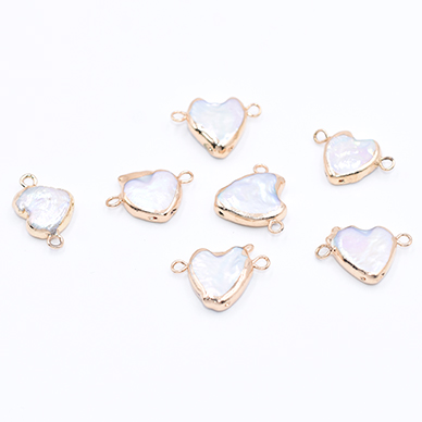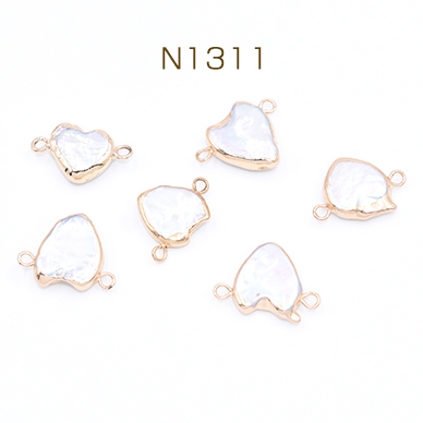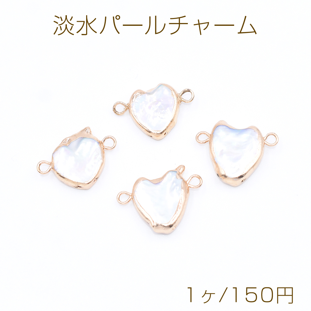 高品質淡水パールチャーム No.63 ハート ゴールド/ホワイト 2カン付き【1ヶ】