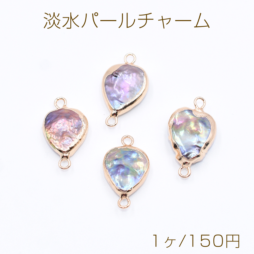 高品質淡水パールチャーム No.65 雫 ゴールド/パープル 2カン付き【1ヶ】