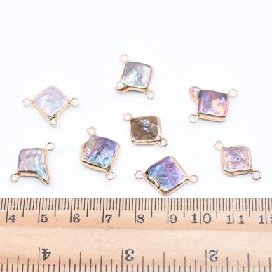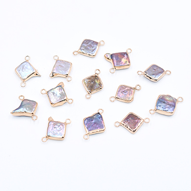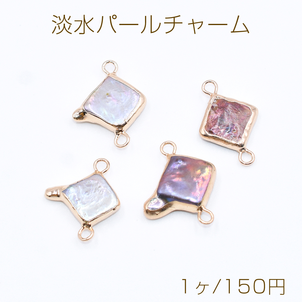 高品質淡水パールチャーム No.67 菱形 ゴールド 2カン付き【1ヶ】