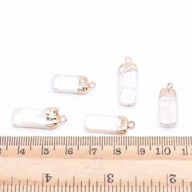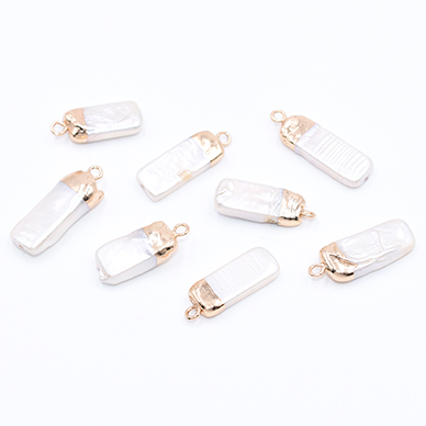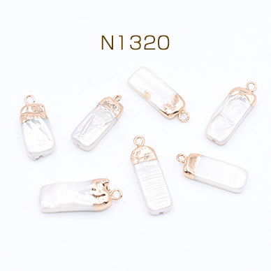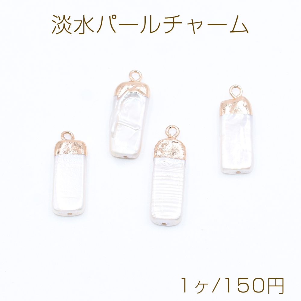 高品質淡水パールチャーム No.71 長方形 ゴールド/ホワイト カン付き【1ヶ】