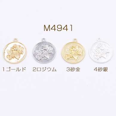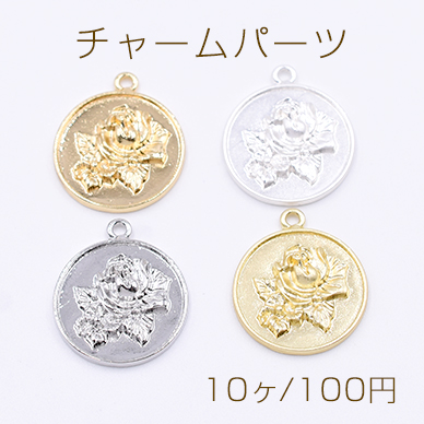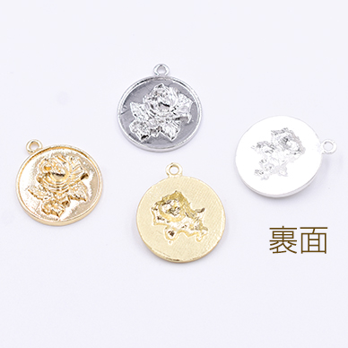 コインチャーム ラウンドプレートチャーム アンティーク風メタルチャーム バラ模様 カン付き 20×23mm(10ヶ)