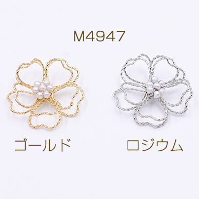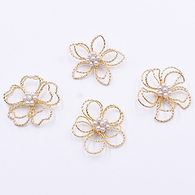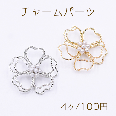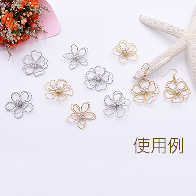フラワーパーツ 立体ワイヤーフラワーパーツ 接続パーツ 五弁花 パール花芯 桜30×30mm (4ヶ)