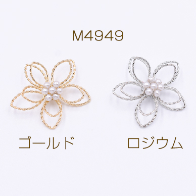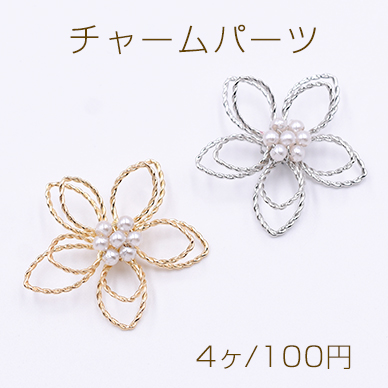 フラワーパーツ 立体ワイヤーフラワーパーツ 接続パーツ 五弁花 パール花芯 五弁花B 30×30mm (4ヶ)