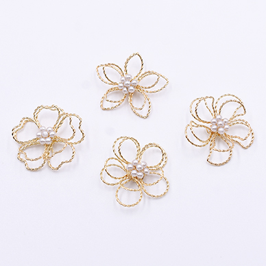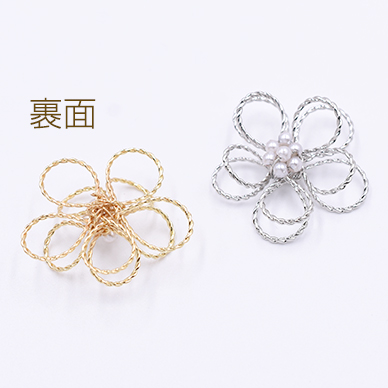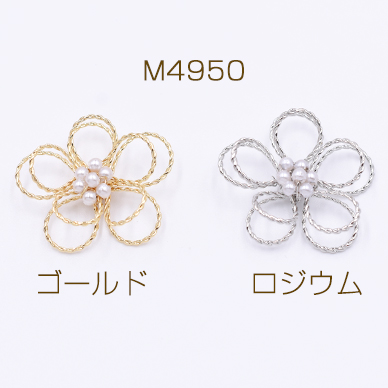 チャームパーツ パール付きフラワーワイヤーチャーム お花の立体ワイヤーチャーム フラワーワイヤーパーツ ツイスト 五弁花C 30×30mm 【4ヶ】