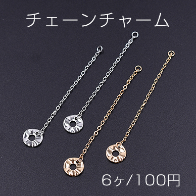 チェーンチャーム アズキチェーン 先端立ドーナツ型パーツ付き 丸カン付き 9mm(6ヶ)