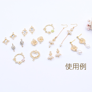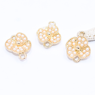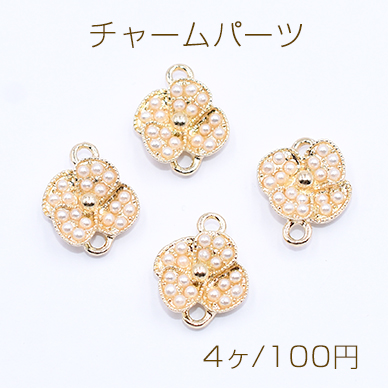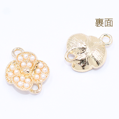 パールコネクターパーツ つなぎパーツ フラワーモチーフ 上下2カン付き 12×15mm(4ヶ)