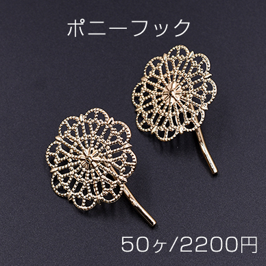 ポニーフック ヘアアクセサリー 座金付 透かしフラワー 30mm【50ヶ】