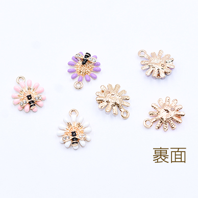 エポチャーム お花とミツバチ 13×17mm ゴールド【2ヶ】