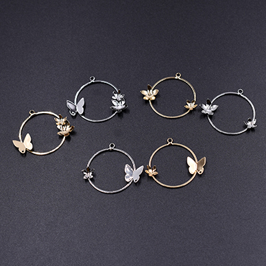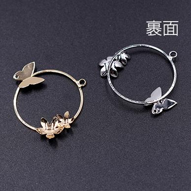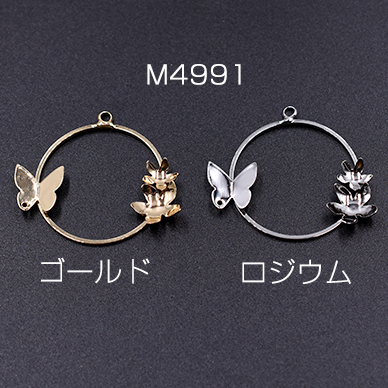 フープチャーム メタルリングチャーム 立体フラワー&蝶モチーフ 丸カン付き 25×28mm(4ヶ)