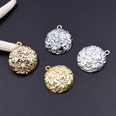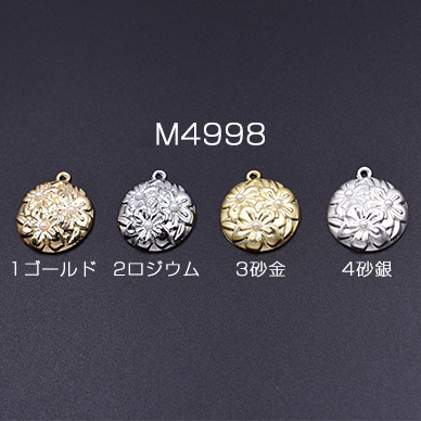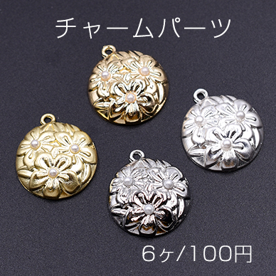 チャームパーツ 丸型 パール付きフラワー 20×23mm【6ヶ】