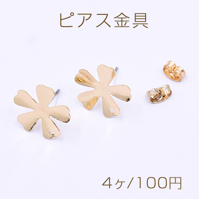 ピアス金具 5弁花 15×15mm 1穴 ゴールド【4ヶ】