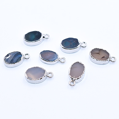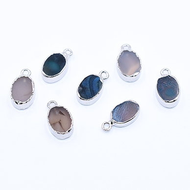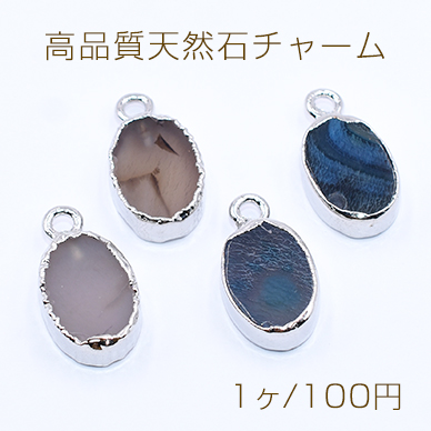 高品質天然石チャーム 楕円 カン付き 12×21mm ロジウム【1ヶ】