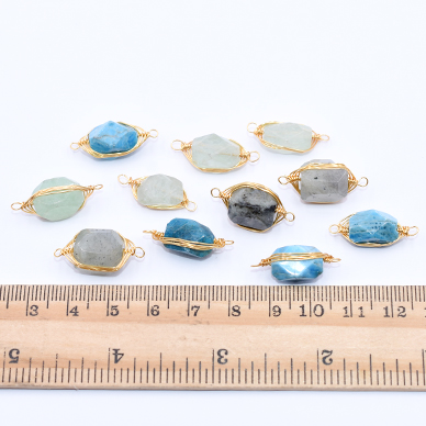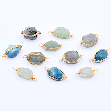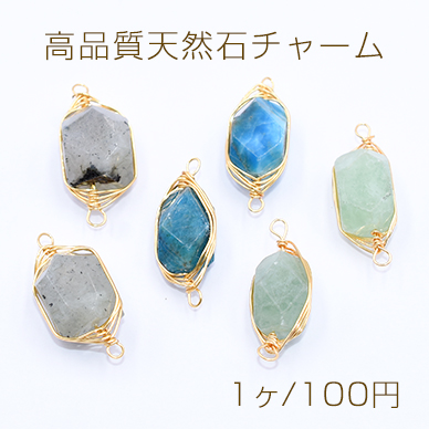 高品質天然石チャーム 不規則カット 2カン付き ゴールド【1ヶ】