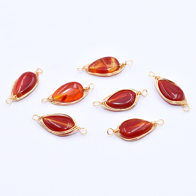 高品質天然石チャーム レッドアンバー 雫 2カン付き 8×21mm ゴールド【1ヶ】