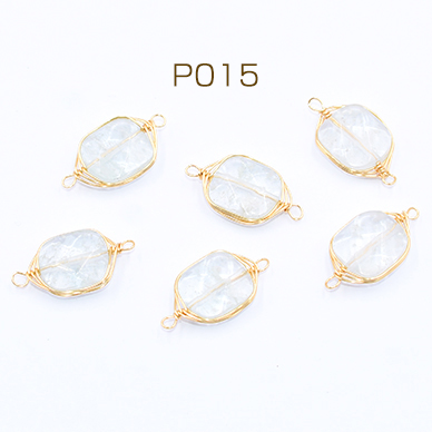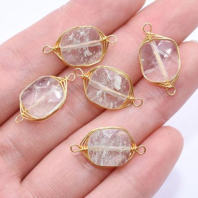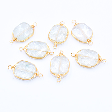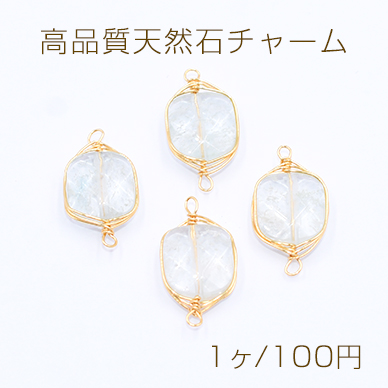 高品質天然石チャーム ホワイトクリスタル 四角形 2カン付き 11×20mm ゴールド【1ヶ】