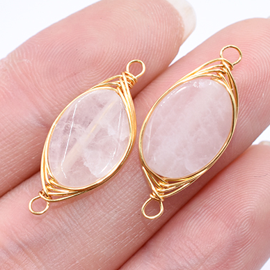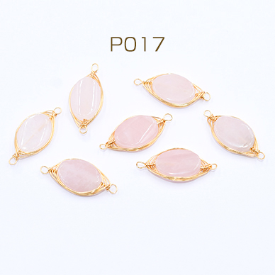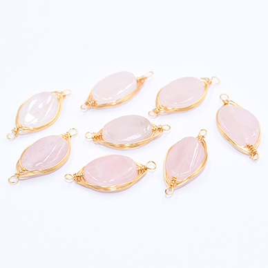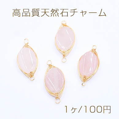 高品質天然石チャーム ローズクオーツ 楕円 2カン付き 10×23mm ゴールド【1ヶ】