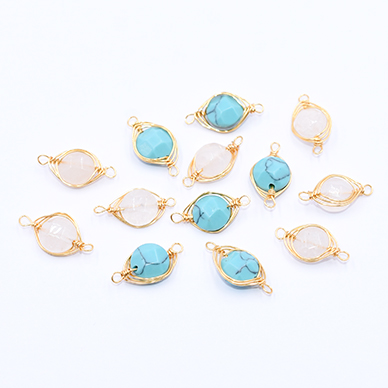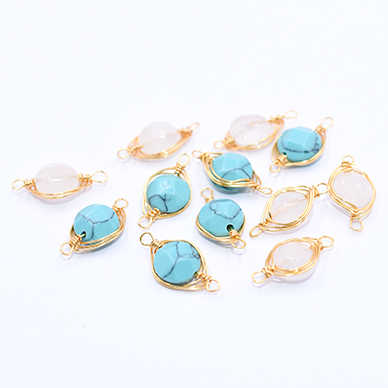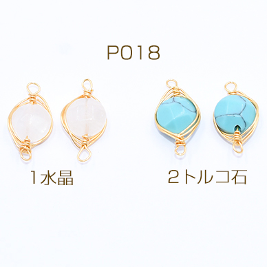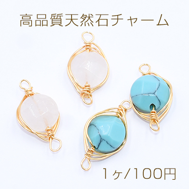 高品質天然石チャーム カット丸型 2カン付き 8×16mm ゴールド【1ヶ】