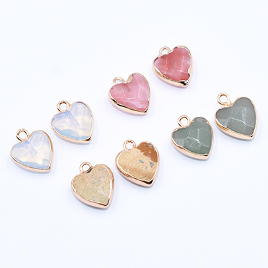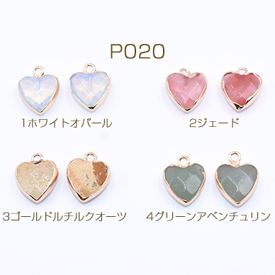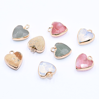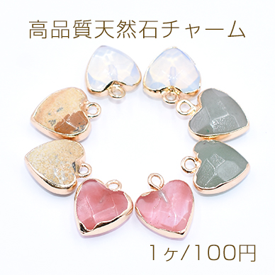 高品質天然石チャーム ハート カン付き 13×15mm ゴールド【1ヶ】