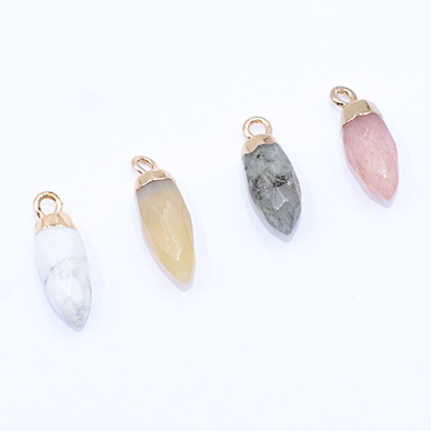 高品質天然石チャーム 弾丸 6×18mm カン付き ゴールド【1ヶ】