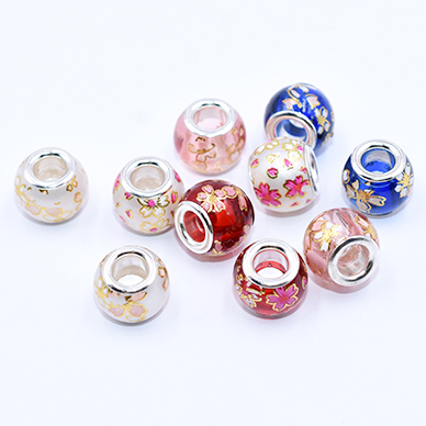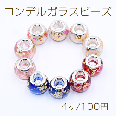 ロンデルガラスビーズ 転写ビーズ 桜 12mm【4ヶ】