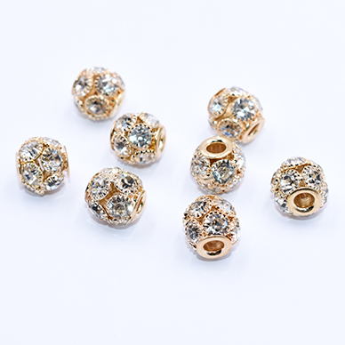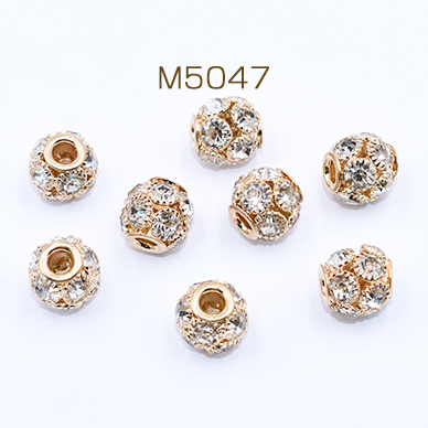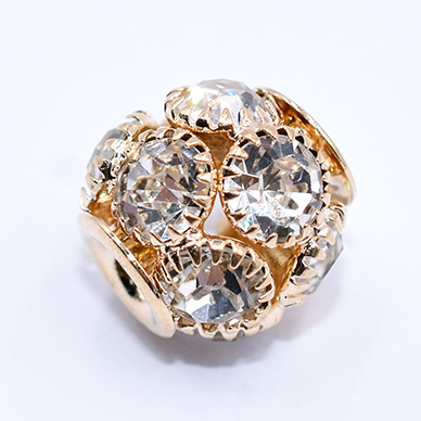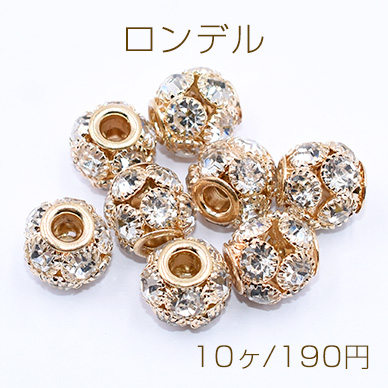 ロンデルビーズ ラインストーン付き 丸型 10mm ゴールド【10ヶ】