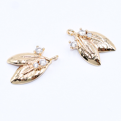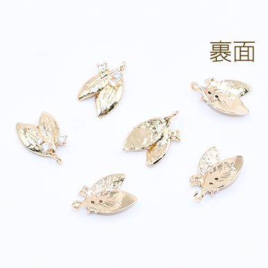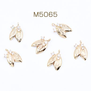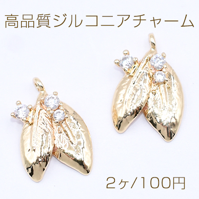 リーフチャーム ジルコニアストーン付き 二枚リーフモチーフ カン付き 9×14mm ゴールド(2ヶ)