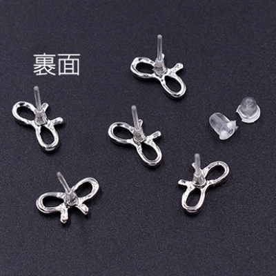 樹脂ピアス リボンB 7×11mm クリア/ロジウム【10ヶ】