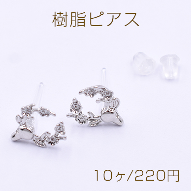 樹脂ピアス 鹿 10×12mm クリア/ロジウム【10ヶ】