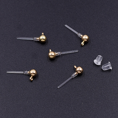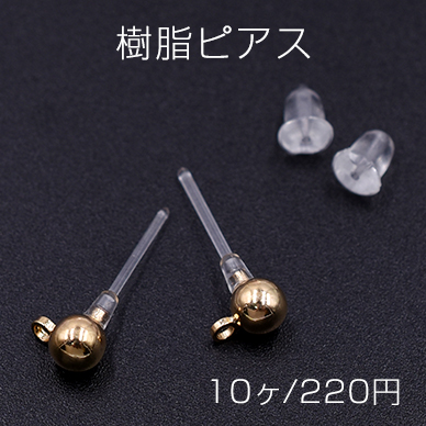 樹脂ピアス ボール カン付き 4mm クリア/ゴールド【10ヶ】