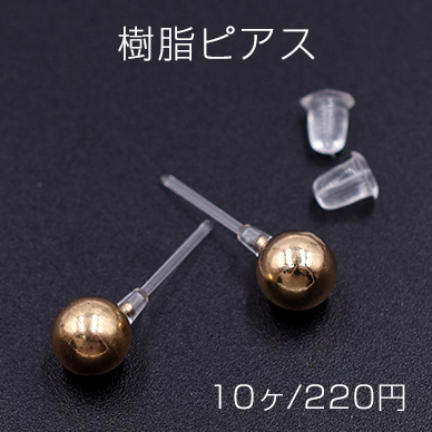 樹脂ピアス ボール 6mm クリア/ゴールド【10ヶ】