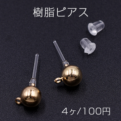 樹脂ピアス ボール カン付き 6mm クリア/ゴールド【4ヶ】