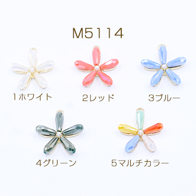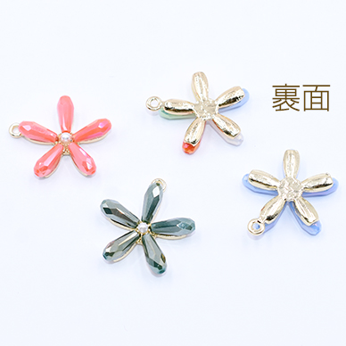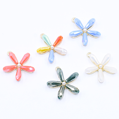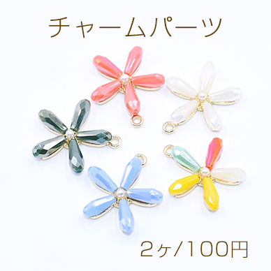 チャームパーツ ガラスビーズとパール付き 5弁花 21×23mm ゴールド【2ヶ】