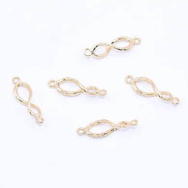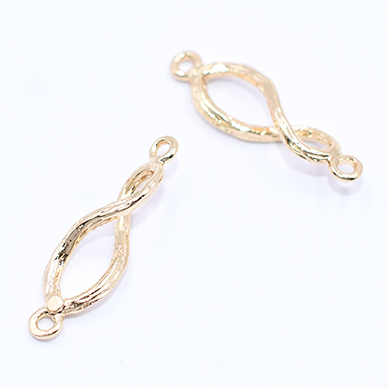 高品質チャームパーツ 八の字 ひねり 2カン付き 6×21mm ゴールド【2ヶ】