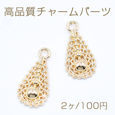 高品質チャームパーツ 透かし 雫型 8×17mm ゴールド【2ヶ】
