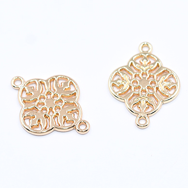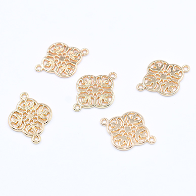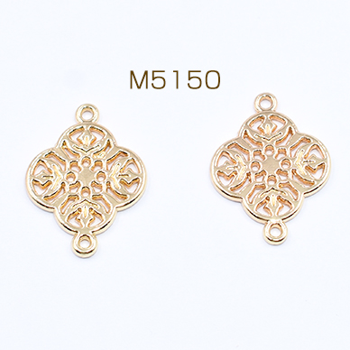 チャームパーツ 透かし フラワー 2カン付き 15×20mm ゴールド【20ヶ】
