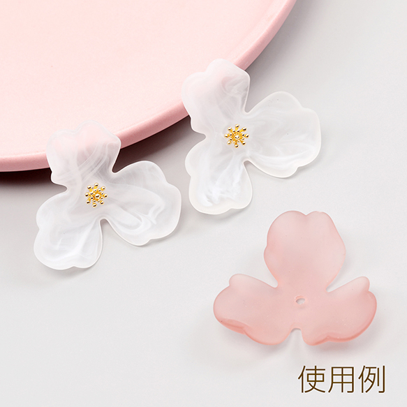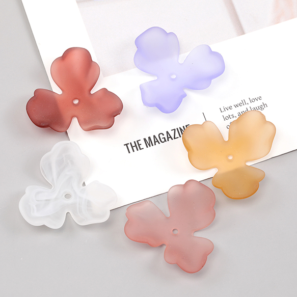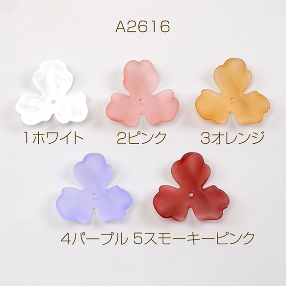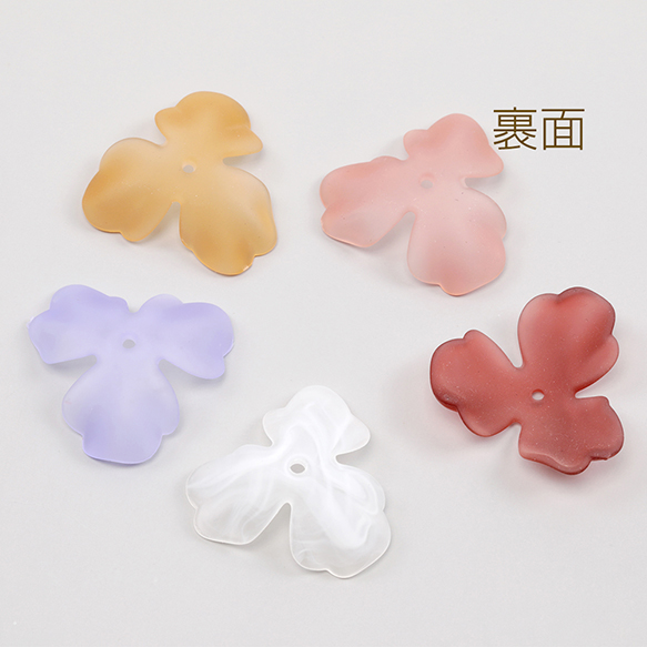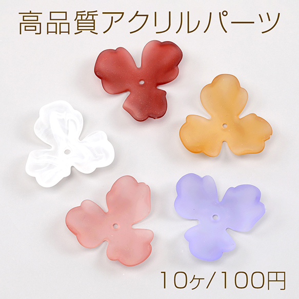 高品質アクリルパーツ 3弁花 穴あり ラバー風 36×36mm【10ヶ】