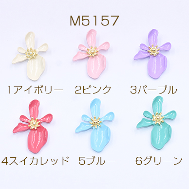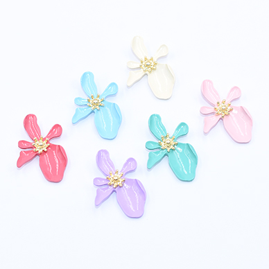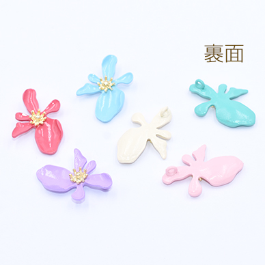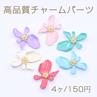 高品質チャームパーツ 塗装4弁花 カン付き 24×33mm【4ヶ】