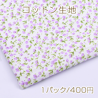 コットン生地 NO.13 小花柄 90×160cm ホワイト/パープル ※単品2点までメール便可能