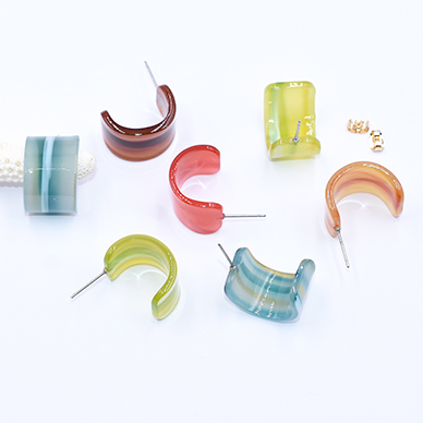 アクリルピアス 立体半円 15×21mm【4ヶ】