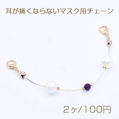 耳が痛くならないマスク用チェーン マスク用フック マスクバンド 調整可能 アメジスト&パール